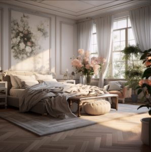 - Romantyczne Inspiracje: Subtelne odcienie różu, kwiatowe motywy i delikatne tkaniny tworzą romantyczną aurę, idealną dla miłośników romantyzmu.