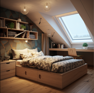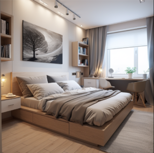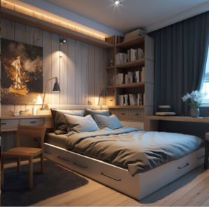 - Sypialnia Dla Aktywnych: Jeśli sypialnia to dla Ciebie także strefa pracy lub relaksu, zastanów się nad funkcjonalną aranżacją, która ułatwi codzienne czynności.