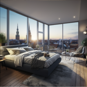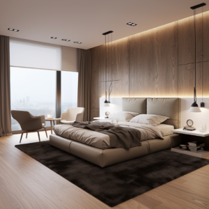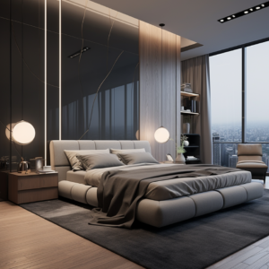 - Nowoczesna Elegancja: Czyste linie, metaliczne dodatki i nowoczesne meble łączą się w stylowy sposób, emanując nowoczesnym luksusem.