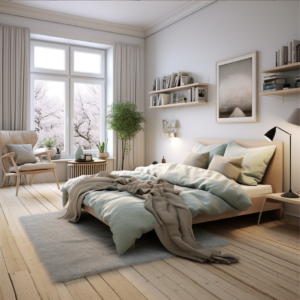 - Przytulna Atmosfera Hygge: Miękkie tekstylia, naturalne materiały i stonowane kolory tworzą przyjazną i ciepłą atmosferę, idealną do relaksu.